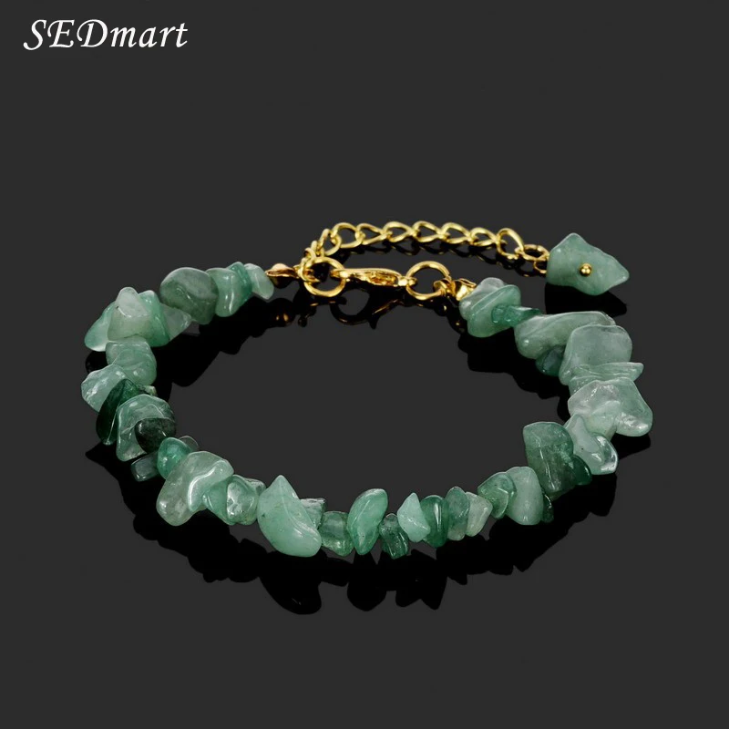 SEDmart 2016 Design Natural Stone Chips Golden Link Bracelet Women Healing Crystal Reiki Bracelets